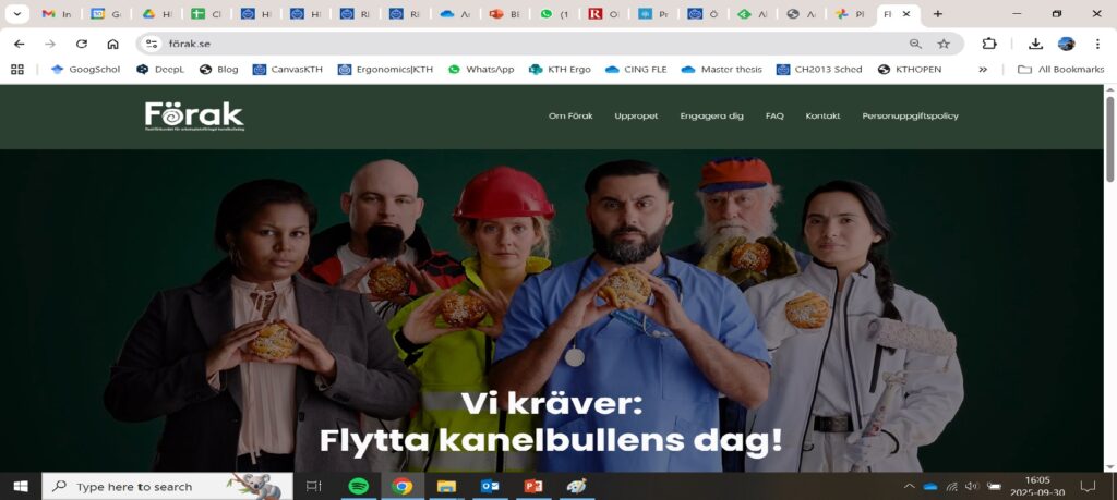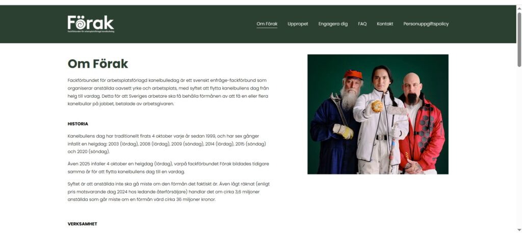The QR code goes to a real website: www.forak.se. describing the ‘association’ and listing its demand: to move cinnamon bun day from a Saturday (when employers don’t have to provide any) to the Friday, when employers will need to bring in cinnamon buns for all the workers.