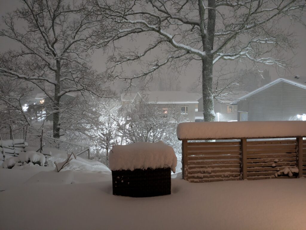 Stockholm is colder than Vancouver, but not as cold as Saskatoon (not by a long shot.) I am one of the few people who moved to Stockholm for the weather. We get snow every winter, but it is pretty variable and according to all the old folks there is a lot less than there used to be, and a lot fewer ski days in city limits. Happily, this year is a snow year! It was warm and mild up until Christmas, and the New Year’s brought snow… and it kept coming. We’ve had snow on the ground and in the trees continuously since then and we’re coming up on Valentine’s day. There have been a few days above freezing that glassed up the surface, but then that froze into a hard crust and more snow kept dropping on top of it.